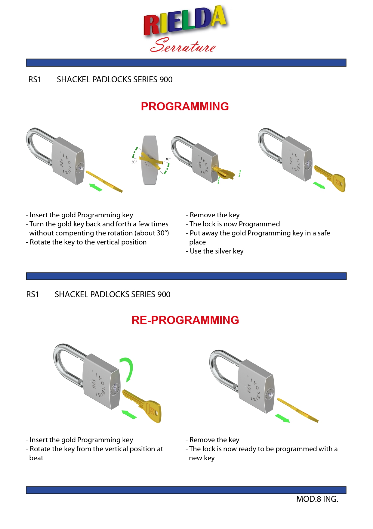 RIELDA 900-50/29 RS/ Italy /Re-programable High Security Padlock /W Key Set 3+1